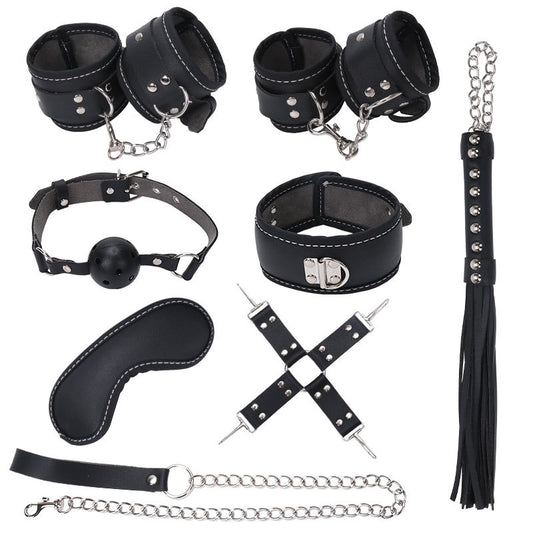 Ball Gag Sexy 7 Piece Set Training Bondage And Discipline Set Plush Leather Handcuffs Product Wholesale